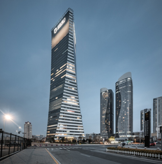 孫紹東長期致力于超高層建筑結(jié)構(gòu)的探索與實踐,他主持設(shè)計的204m高山東港口大廈為高度超B級的鋼管混凝土框架-鋼筋混凝土核心筒混合結(jié)構(gòu)。為在幕墻結(jié)構(gòu)構(gòu)件纖細化的前提下抵抗百年一遇的風荷載,實現(xiàn)頂部六層通高空中大堂,他帶領(lǐng)團隊與德國SBP結(jié)構(gòu)事務(wù)所合作,采用了獨創(chuàng)的由豎向雙索、單索及水平鋼扁梁構(gòu)成的42m×32m超大索網(wǎng)幕墻體系,呈現(xiàn)出了國內(nèi)首創(chuàng)的高空通透觀景平臺,成為青島的新地標。