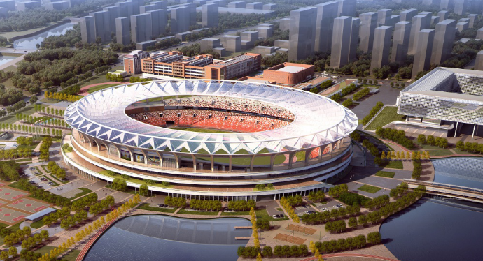 第25屆山東省運動會主體育場——日照奎山體育中心,騰遠2019年的原創(chuàng)設(shè)計項目,彰顯孫紹東的技術(shù)功力和獨具匠心。這個擁有3.5萬個座席的大型體育場,大膽采用了國內(nèi)首例橢圓形平面輪輻式波形索膜屋蓋,這是國際最先進的大跨空間結(jié)構(gòu)形式,將力與美完美結(jié)合,受到全國超限抗震專項審查專家組的高度評價。該工程屋蓋最大懸挑43米,加之平面曲率的變化使得索力分布不均勻,結(jié)構(gòu)設(shè)計難度超過已建成的圓形平面索膜屋蓋體育場。          設(shè)計中采用了先進的索膜聯(lián)合找形方法,使索和膜的受力更符合實際;充分考慮了極端風雪荷載、極值溫差下結(jié)構(gòu)的受力,進行了關(guān)鍵承重索及支座失效時的瞬態(tài)動力防連續(xù)倒塌驗算,確保了結(jié)構(gòu)的安全。