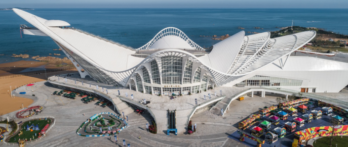 青島國際啤酒節(jié)主會場鳳凰之聲大劇院,是一座264m長的仿生建筑,包括           一個千人歌劇院和一個可容納三千觀眾的現(xiàn)代秀場,形似降落在金沙灘上的一只鳳凰。該項目最大跨度64m,分為頭部、背部、尾部、兩翼部分,通過兩部沿“鳳凰”脖頸的世界最長傾斜電梯可直達懸挑18m的蹦極平臺。孫紹東帶領(lǐng)團隊,本著安全與經(jīng)濟并重的原則,在鋼結(jié)構(gòu)設(shè)計中根據(jù)造型變化采用了立體拱架、管桁架、鋼框架、單層網(wǎng)殼等多種形式組合,詳細地分析了豎向及水平荷載作用下的傳力路徑,使其能抵御罕遇地震及百年一遇的風荷載,并避免在關(guān)鍵構(gòu)件破壞后的結(jié)構(gòu)連續(xù)倒塌,以高度的責任心,為市民打造了一座造型美觀、欣賞度較高的國際一流音樂殿堂。