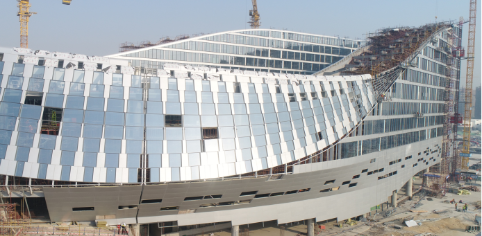 中鐵·青島世界博覽城會議中心綜合體項目處于山東省青島市黃島區(qū),占地9.18萬平米,總建筑面積12.47萬平米,地上面積9.5萬。該區(qū)域以建設(shè)會議、展覽為核心,涵蓋文化、旅游、休閑、娛樂、商務居住等多功能的國際濱海博覽城。未來這里不僅是中國海洋經(jīng)濟的繁榮之地,更是商務交流與人文生活的豐饒之地。