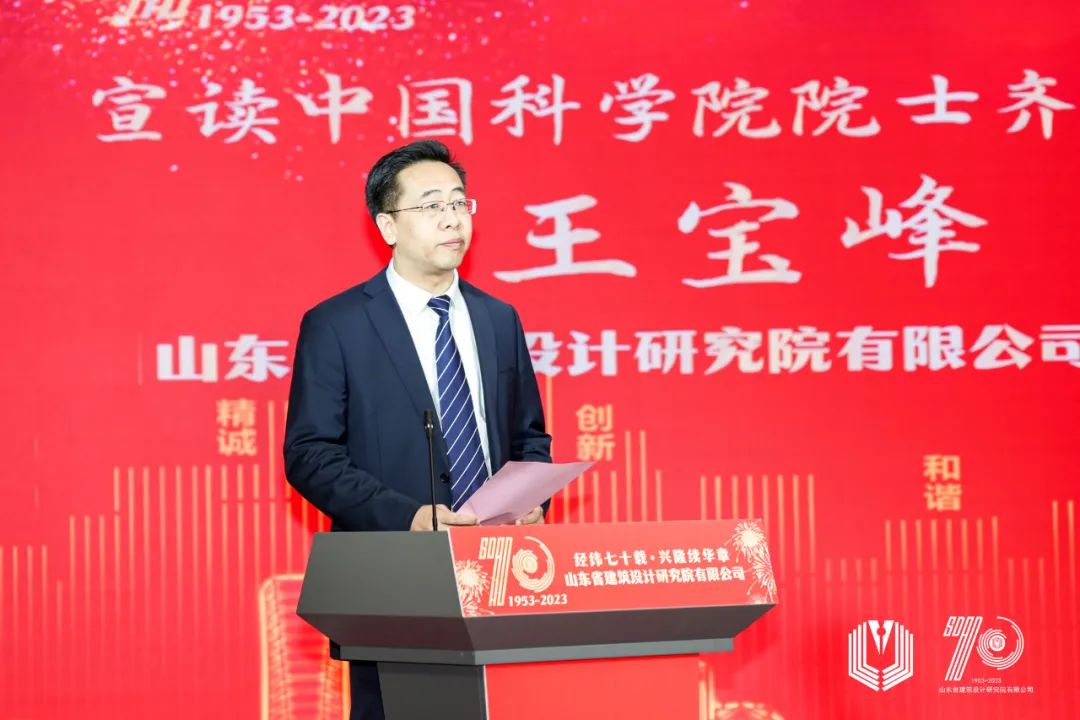 多年來(lái),山東省院得到了行業(yè)各級(jí)協(xié)會(huì)、學(xué)會(huì)與兄弟單位的大力支持與幫助,締結(jié)了深厚友誼,并一直保持著緊密聯(lián)系和密切合作。山東大學(xué)校長(zhǎng)李術(shù)才、中國(guó)科學(xué)院院士齊康發(fā)來(lái)賀信,公司總經(jīng)理王寶峰宣讀了院士賀信,并向他們表示感謝。中國(guó)工程院院士、中國(guó)建筑設(shè)計(jì)研究院有限公司名譽(yù)院長(zhǎng)、總建筑師崔愷,中國(guó)工程院院士、深圳市建筑設(shè)計(jì)研究總院總建筑師孟建民,中國(guó)對(duì)外工程承包商會(huì)會(huì)長(zhǎng)房秋晨也發(fā)來(lái)祝賀視頻。除此之外,還有200多家單位或個(gè)人以不同形式對(duì)山東省院70周年院慶表示祝賀。