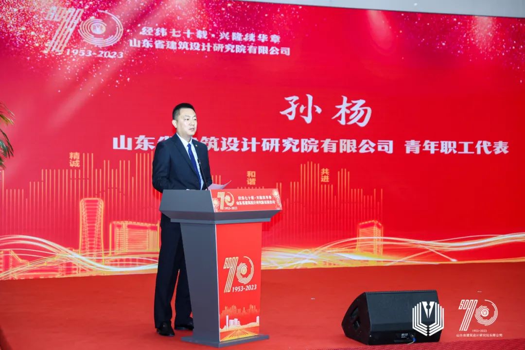 七十年的歷程,老職工的堅(jiān)實(shí)臂膀,助推著我院的蛻變與成長(zhǎng)。老職工代表、于海平同志向大家講述了過(guò)去那些激情燃燒的歲月?;鶚I(yè)長(zhǎng)青,薪火相傳。青年職工代表、孫楊同志在發(fā)言中表示,“青年一代建筑師,生逢偉大時(shí)代,當(dāng)立遠(yuǎn)志、勤踐悟。”