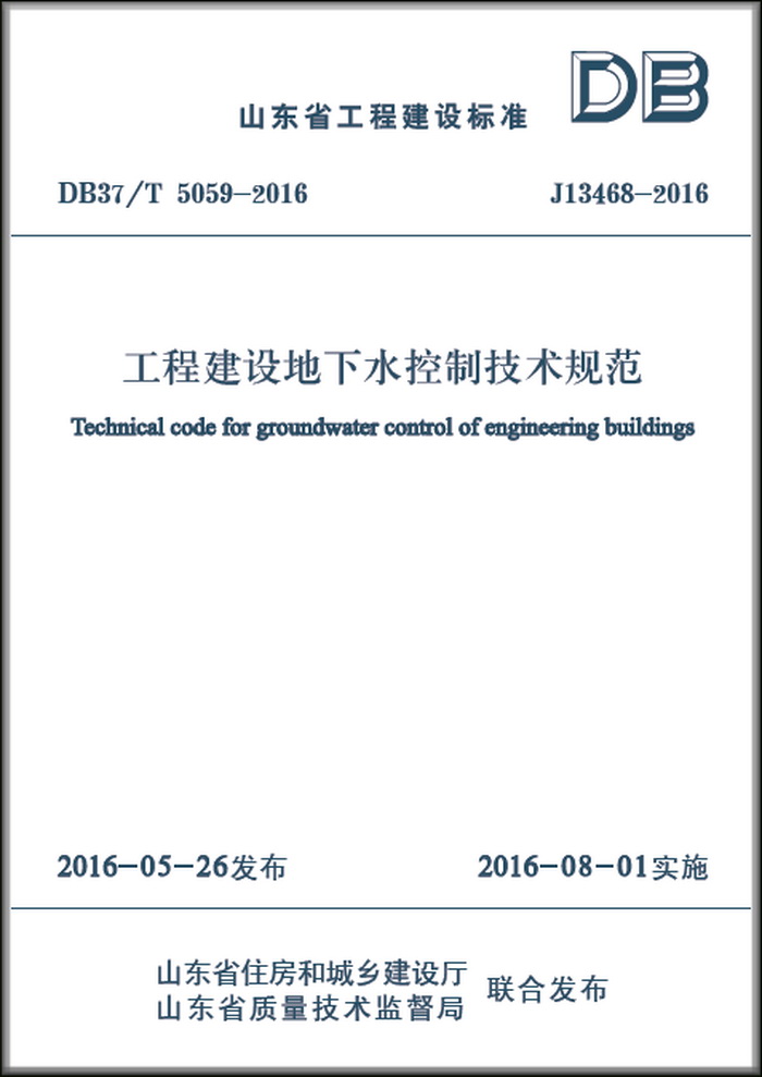 由山東設(shè)協(xié)勘察設(shè)計(jì)審查咨詢中心會(huì)同有關(guān)單位共同編寫的《工程建設(shè)地下水控制技術(shù)規(guī)范》已審定通過,批準(zhǔn)為山東省工程建設(shè)標(biāo)準(zhǔn),編號(hào)為DB37/T 5059-2016。山東省住房和城鄉(xiāng)建設(shè)廳和山東省質(zhì)量技術(shù)監(jiān)督局于2016年5月26日聯(lián)合發(fā)布,自2016年8月1日起實(shí)施。