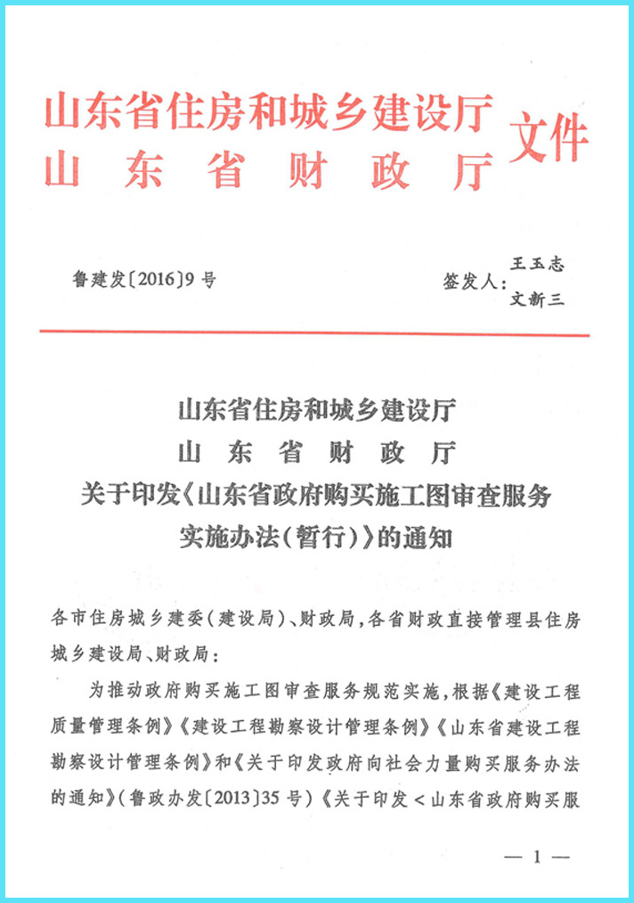 山東省住房和城鄉(xiāng)建設(shè)廳 山東省財(cái)政廳關(guān)于印發(fā)《山東省政府購(gòu)買施工圖審查服務(wù)實(shí)施辦法(暫行)》的通知