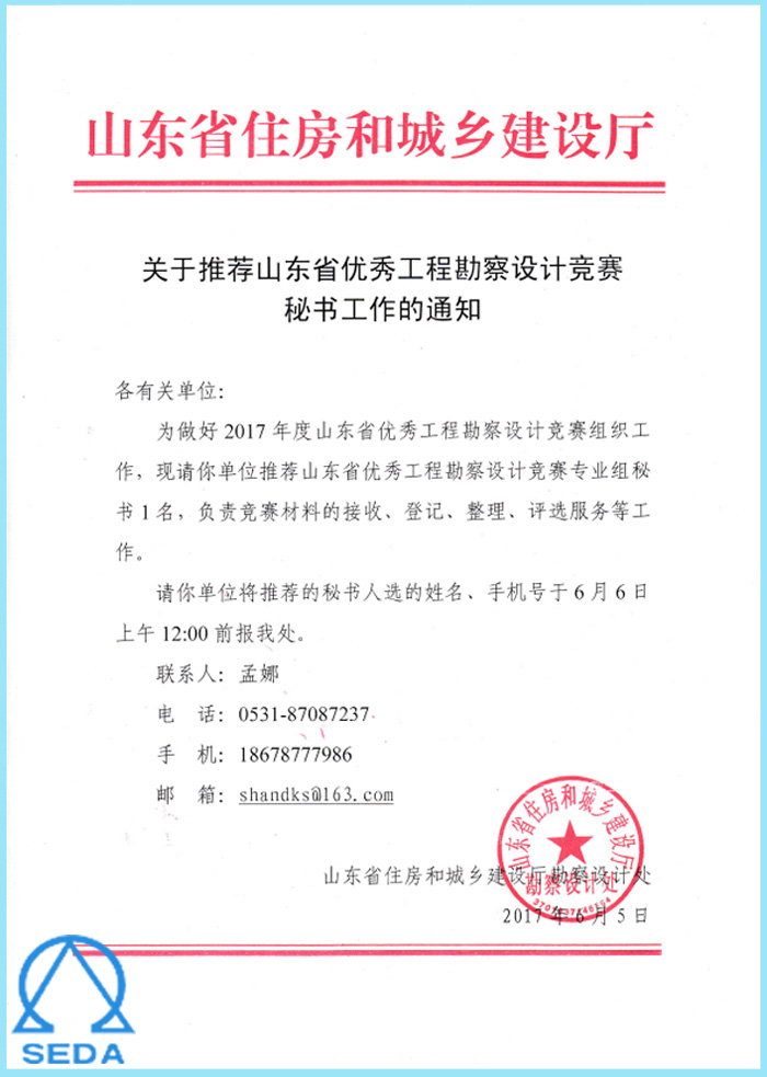 【關于推薦山東省工程勘察設計競賽秘書工作的通知】