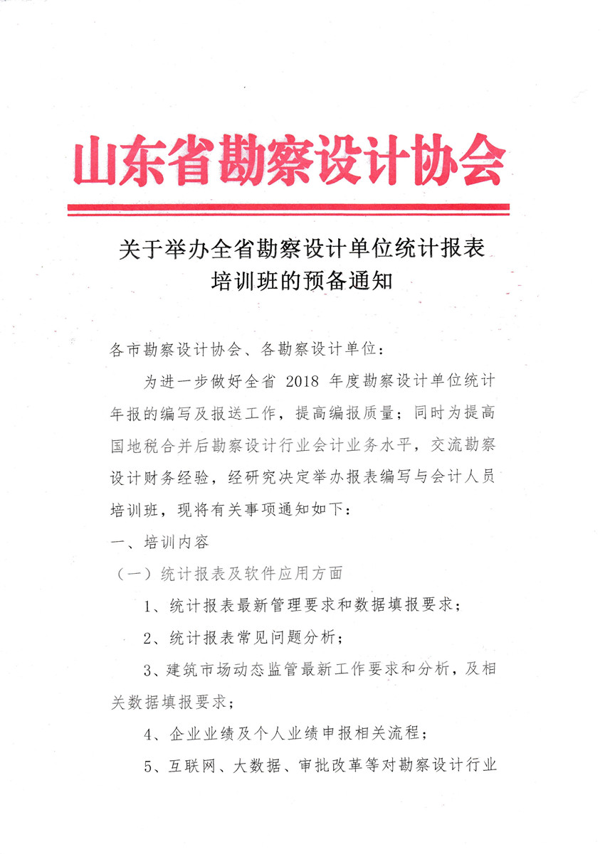 關(guān)于舉辦全省勘察設(shè)計(jì)單位統(tǒng)計(jì)報(bào)表 培訓(xùn)班的預(yù)備通知