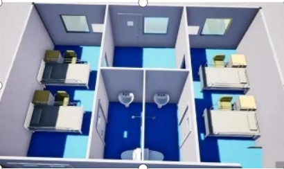 模塊化的標(biāo)準(zhǔn)病房按照2人間設(shè)計(jì),約18平方米,配備了供氧系統(tǒng)、負(fù)壓抽吸系統(tǒng)等。病房設(shè)獨(dú)立衛(wèi)生間,衛(wèi)生間配有坐便器、安全抓桿和淋浴等設(shè)施。