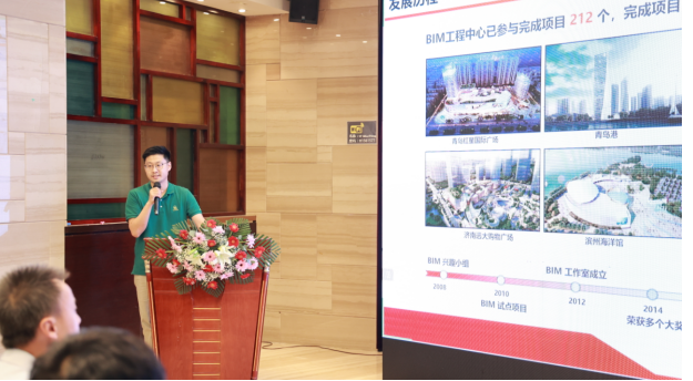 青島騰遠設(shè)計事務(wù)所有限公司BIM工程中心副總監(jiān)李曉華交流了“BIM在大型商業(yè)綜合體項目設(shè)計階段的應(yīng)用”,介紹了BIM數(shù)字化服務(wù)體系,針對商業(yè)綜合體項目的難點及業(yè)主需求如何制定相應(yīng)的解決方案。他認為策劃周密的BIM管理與應(yīng)用使得BIM模型在建設(shè)過程中高度的共享與傳遞,可有效節(jié)省無效成本、提高設(shè)計品質(zhì)、保證施工工期。同時也分享項目實施工程中的痛點和亮點,為大家?guī)砹司实纳虡I(yè)綜合體項目的BIM數(shù)字化實施方案。