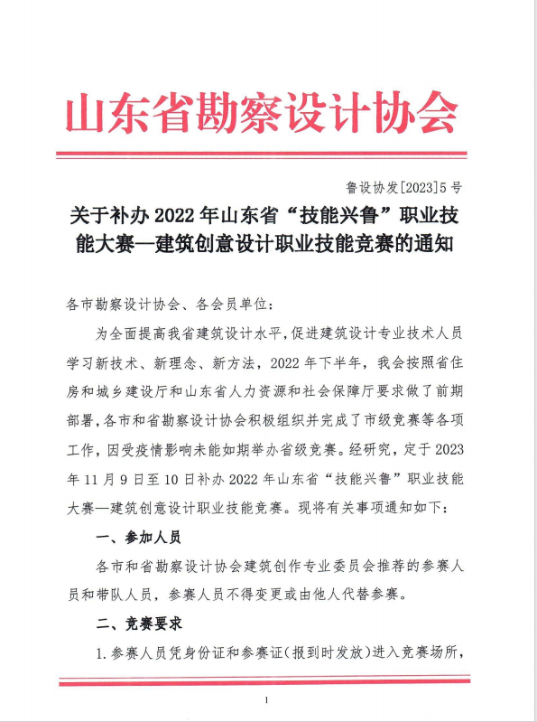 附件:關(guān)于補(bǔ)辦2022年山東省“技能興魯”職業(yè)技能大賽—建筑創(chuàng)意設(shè)計(jì)職業(yè)技能競賽的通知