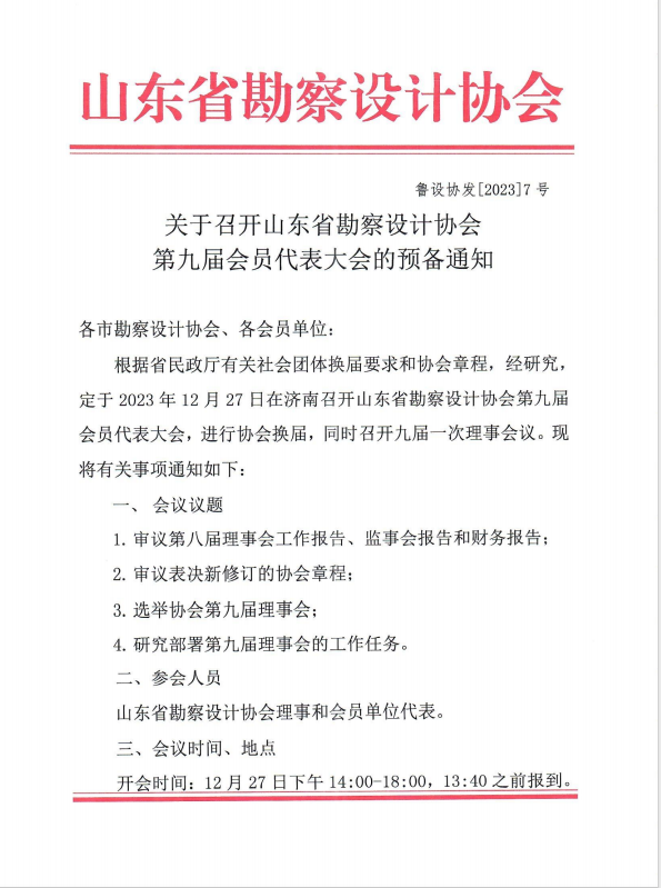 附件:《關(guān)于召開山東省勘察設(shè)計(jì)協(xié)會第九屆會員代表大會的預(yù)備通知》