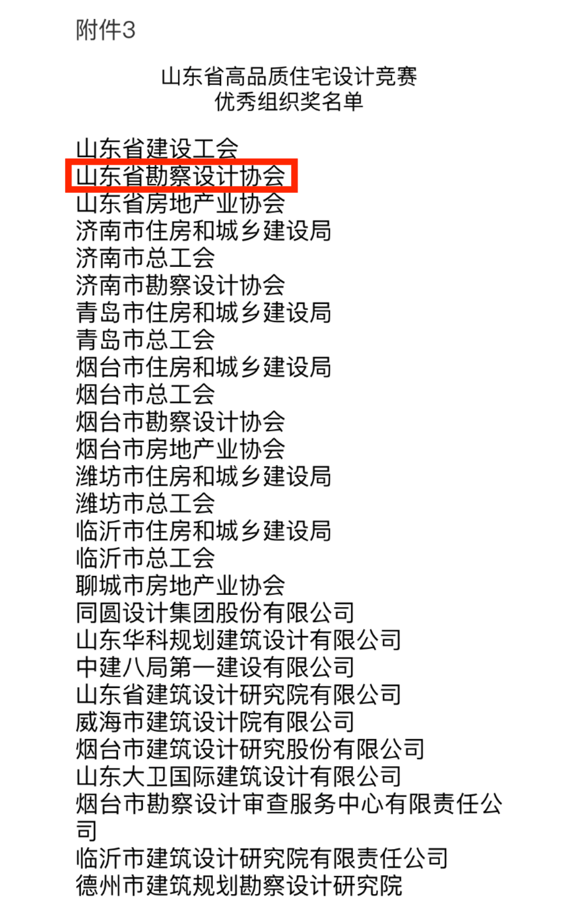 3.山東省高品質(zhì)住宅設(shè)計競賽優(yōu)秀組織獎名單