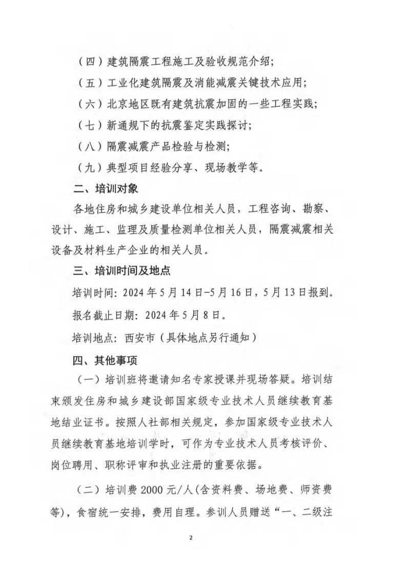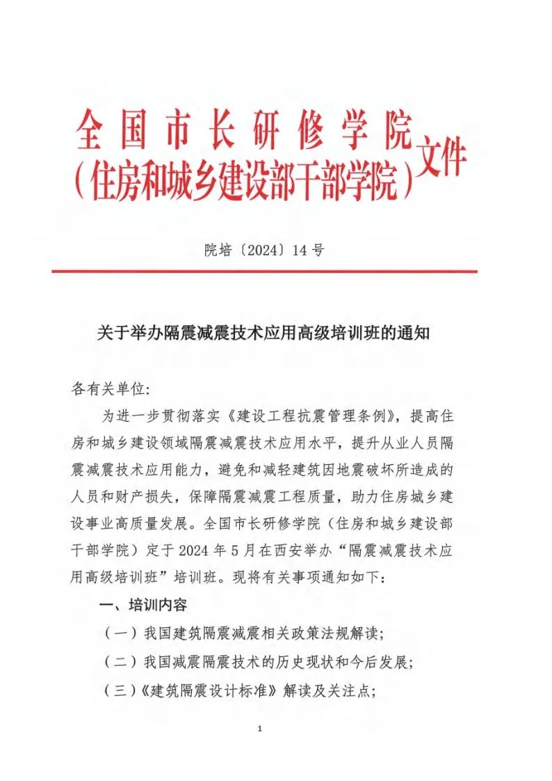 轉發(fā)住房和城鄉(xiāng)建設部干部學院《關于舉辦隔震減震技術應用高級培訓班的通知》