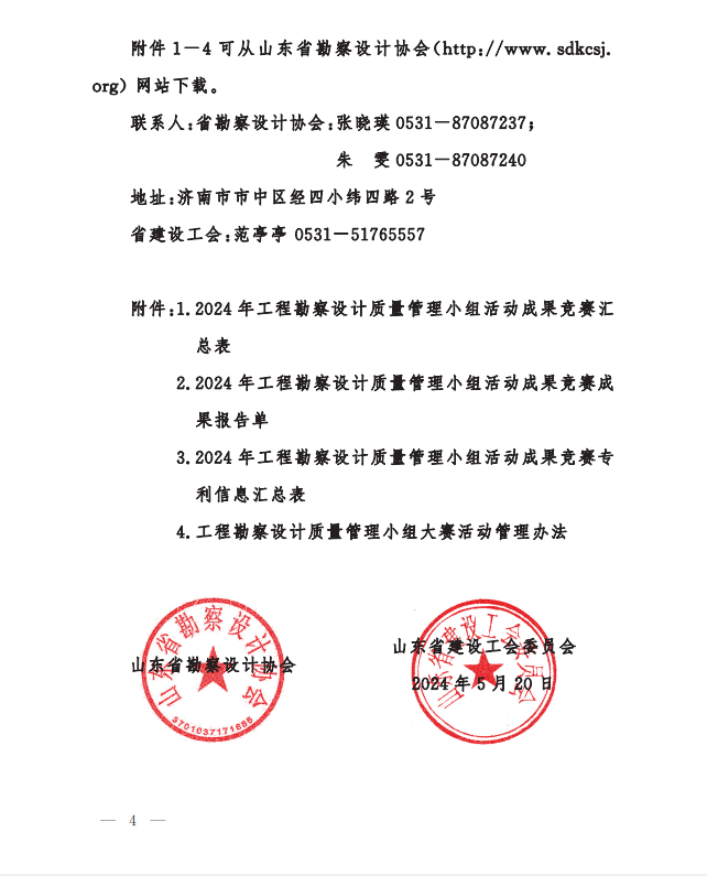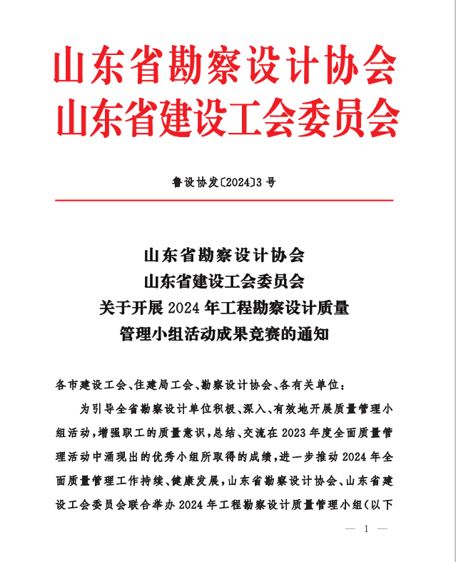 山東省勘察設(shè)計協(xié)會 山東省建設(shè)工會委員會 關(guān)于開展2024年工程勘察設(shè)計質(zhì)量 管理小組活動成果競賽的通知