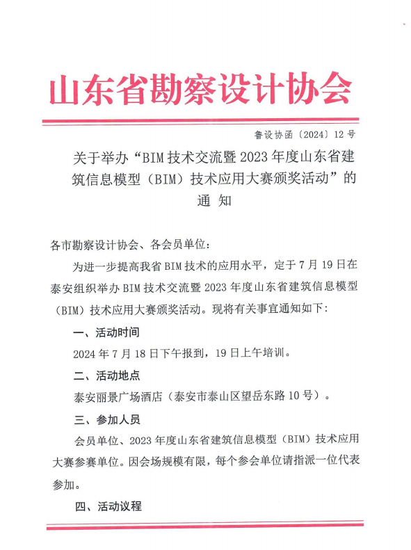 附件:關(guān)于舉辦“BIM技術(shù)交流暨2023年度山東省建筑信息模型(BIM)技術(shù)應(yīng)用大賽頒獎(jiǎng)活動(dòng)”的通知