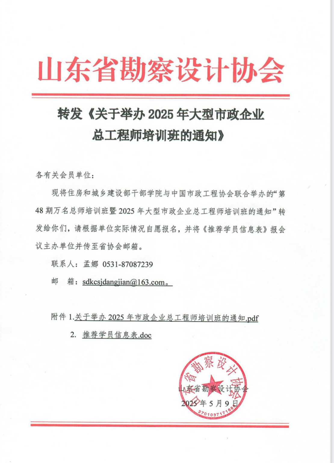附件:1.關于舉辦2025年市政企業(yè)總工程師培訓班的通知