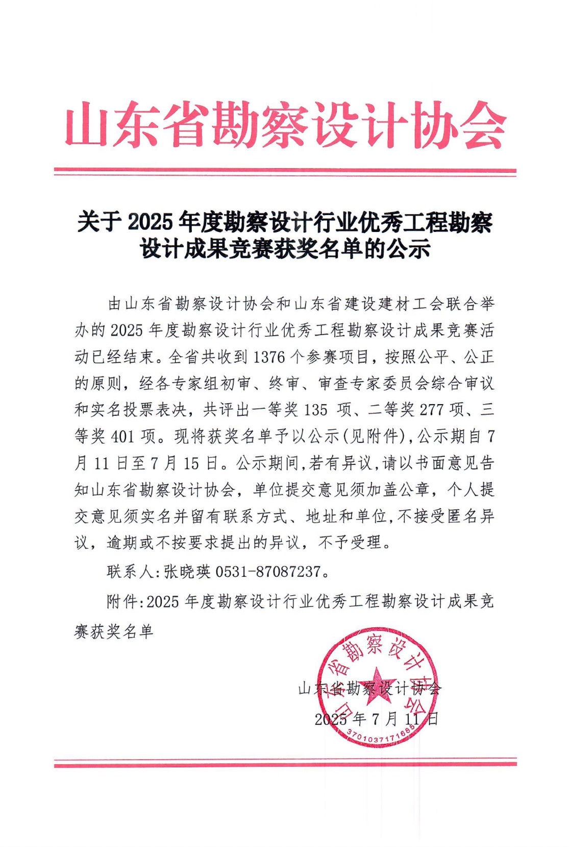 附件:2025年度勘察設計行業(yè)優(yōu)秀工程勘察設計成果競賽獲獎通知及名單