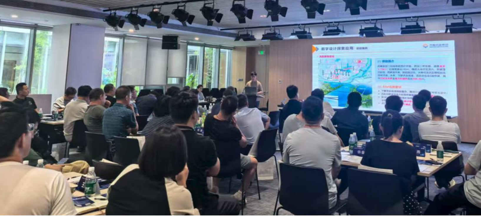 會(huì)上,多位行業(yè)專(zhuān)家圍繞國(guó)產(chǎn) BIM 技術(shù)創(chuàng)新應(yīng)用與企業(yè)數(shù)字化轉(zhuǎn)型實(shí)踐展開(kāi)專(zhuān)題分享。北京市市政工程設(shè)計(jì)研究總院有限公司數(shù)字智慧院數(shù)字化設(shè)計(jì)所所長(zhǎng)張萬(wàn)閣以《BIM 驅(qū)動(dòng)的設(shè)計(jì)企業(yè)數(shù)字化轉(zhuǎn)型實(shí)踐》為題,詳解了北京市政總院 “管控?cái)?shù)字化、業(yè)務(wù)數(shù)字化、數(shù)字業(yè)務(wù)化” 的核心的轉(zhuǎn)型戰(zhàn)略,結(jié)合北京城市副中心站綜合交通樞紐、東莞松山湖水廠等標(biāo)桿項(xiàng)目,闡述了 BIM 技術(shù)在工程全生命周期的落地應(yīng)用,清晰展現(xiàn) “從設(shè)計(jì) + BIM 到 BIM + 設(shè)計(jì)” 的升級(jí)路徑,并提供出“工具應(yīng)用 — 流程再造 — 數(shù)據(jù)驅(qū)動(dòng)” 的三階轉(zhuǎn)型參考,為傳統(tǒng)設(shè)計(jì)向智慧基建服務(wù)轉(zhuǎn)型提供了可借鑒的實(shí)踐框架。濟(jì)南城建集團(tuán)有限公司設(shè)計(jì)研究院郭越分享的《國(guó)產(chǎn)BIM平臺(tái)全周期數(shù)據(jù)貫通應(yīng)用》,展現(xiàn)了其在數(shù)字設(shè)計(jì)領(lǐng)域的探索成果。濟(jì)南城建構(gòu)建起了“戰(zhàn)略層—管理層—業(yè)務(wù)層—知識(shí)層”的數(shù)字化架構(gòu),在冠縣杭州路三干渠橋梁、起步區(qū)黃河大道二期(四標(biāo)段)等項(xiàng)目中,通過(guò)國(guó)產(chǎn)BIM平臺(tái)實(shí)現(xiàn)參數(shù)化建模、工程量精準(zhǔn)核算、多專(zhuān)業(yè)協(xié)同校審及數(shù)字化交付,顯著提升設(shè)計(jì)效率與工程質(zhì)量。其在智慧供水、地下管網(wǎng)GIS平臺(tái)等領(lǐng)域的創(chuàng)新實(shí)踐,進(jìn)一步凸顯了國(guó)產(chǎn)BIM技術(shù)在復(fù)雜基建場(chǎng)景中的全周期價(jià)值。廣聯(lián)達(dá)業(yè)務(wù)專(zhuān)家王晶泉在《數(shù)維基建一體化解決方案》報(bào)告中,介紹了廣聯(lián)達(dá)針對(duì)基建設(shè)計(jì)領(lǐng)域系統(tǒng)性數(shù)字化需求的解決方案——構(gòu)建道路、橋梁、管線等多專(zhuān)業(yè)一體化正向設(shè)計(jì)體系。該方案以“AI智能選線、參數(shù)化構(gòu)件設(shè)計(jì)、現(xiàn)狀管網(wǎng)識(shí)別、管網(wǎng)修復(fù)、多專(zhuān)業(yè)協(xié)同、設(shè)計(jì)造價(jià)一體化”等功能,可滿足新建、改擴(kuò)建、城市更新等多元場(chǎng)景需求,有效提升設(shè)計(jì)質(zhì)量與效率;同時(shí)依托數(shù)維協(xié)同平臺(tái)實(shí)現(xiàn)多專(zhuān)業(yè)數(shù)據(jù)互通聯(lián)動(dòng)。結(jié)合創(chuàng)新杯獲獎(jiǎng)案例,報(bào)告展示了該方案在提升設(shè)計(jì)效率、保障模型合規(guī)、支撐全周期數(shù)據(jù)貫通等方面的顯著成效。