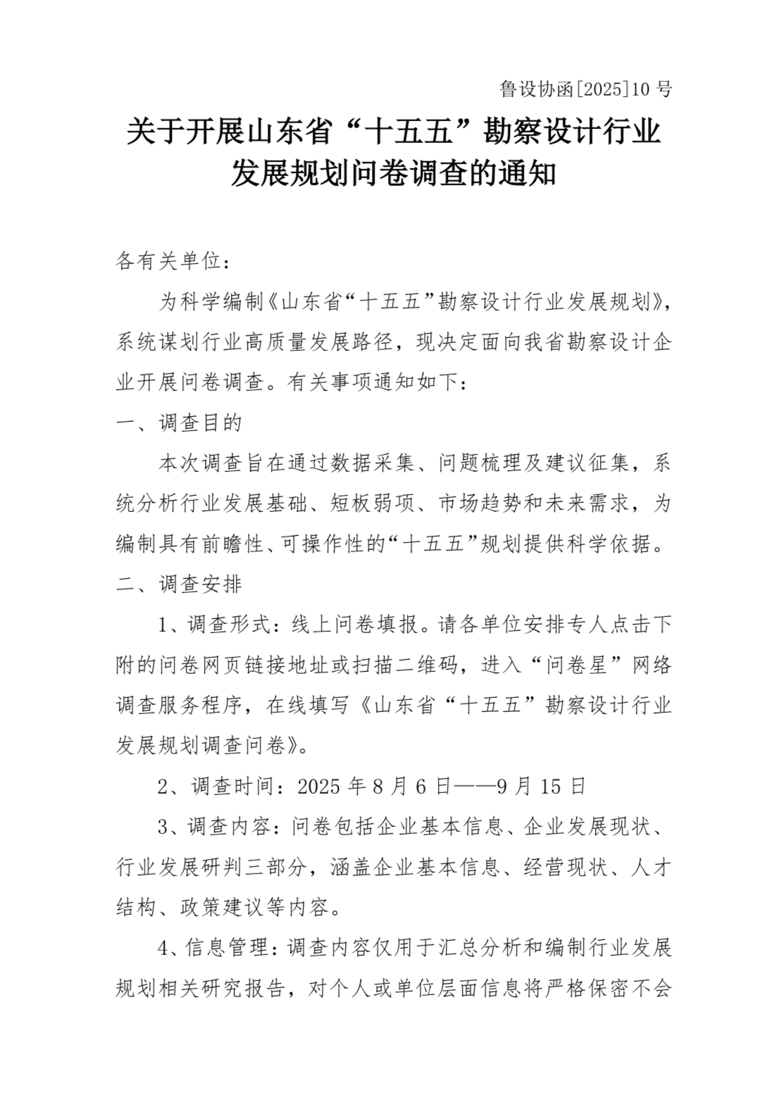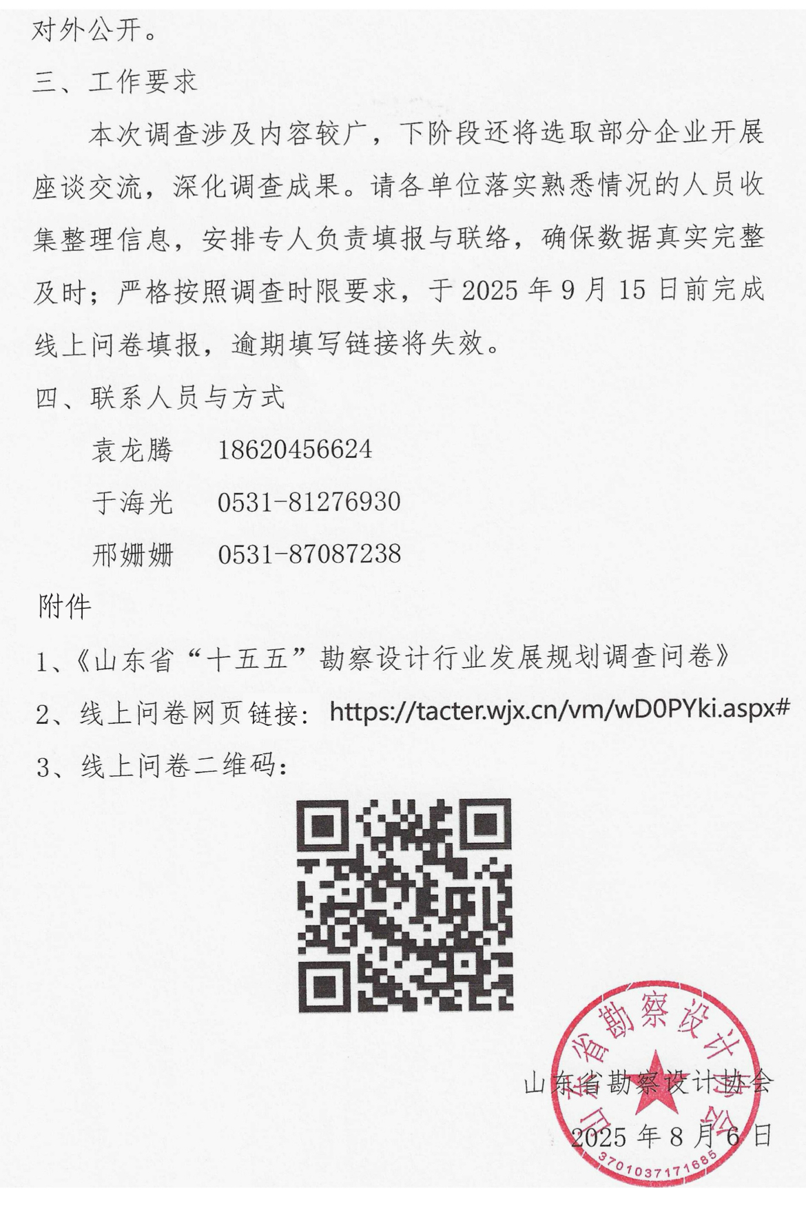 2.關(guān)于開展山東省“十五五”勘察設(shè)計(jì)行業(yè)發(fā)展規(guī)劃問(wèn)卷調(diào)查的通知
