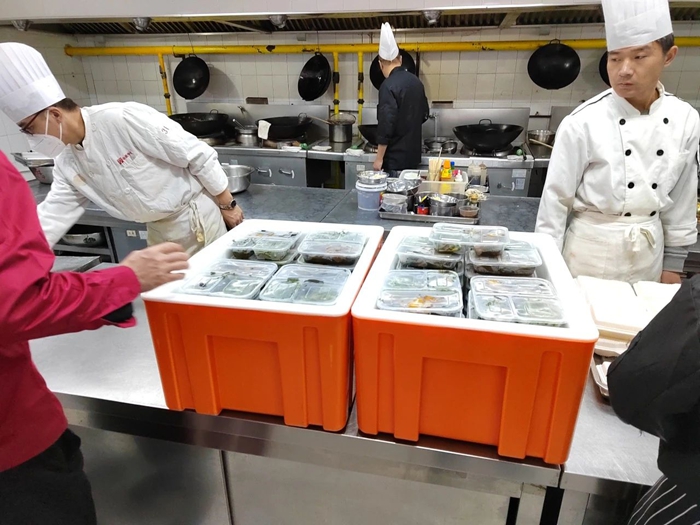 為此,賓館早在5月下旬就統籌協調廚師人員、配菜人員,并根據每日不同的菜譜,具體安排烹飪時間和順序。此外,賓館還對配送路上花費的時長進行具體測算,同時明確要求,辦公室和后勤人員要在保證安全衛生的條件下,充實到分裝配送一線,最大限度確保每一份盒飯,在中午休息時第一時間送達到用餐人員手中。當賓館的送餐人員將盒飯配送至比賽現場,看著賽事人員大口大口吃著冒著熱氣的飯菜時,內心涌起無比的自豪和欣慰。