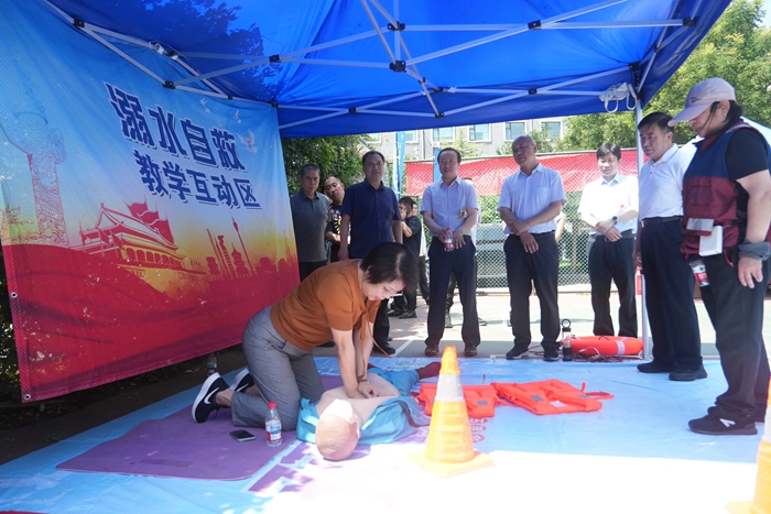演練結束后,舉辦方在大廈籃球場開啟安全咨詢體驗活動。整個活動共設置了6個項目,分別為擁擠踩踏應急處置體驗區(qū)(充氣帳篷)、消防隱患排查試驗區(qū)、電動車電池穿刺爆燃體驗裝置、溺水自救互救教學培訓區(qū)、醉酒交通AR模擬體驗、安全標志互動區(qū)。活動現(xiàn)場氣氛熱烈,盡管天氣炎熱,但絲毫沒有減弱大家體驗掌握應急技能的熱情。
