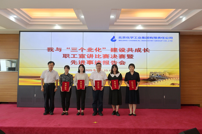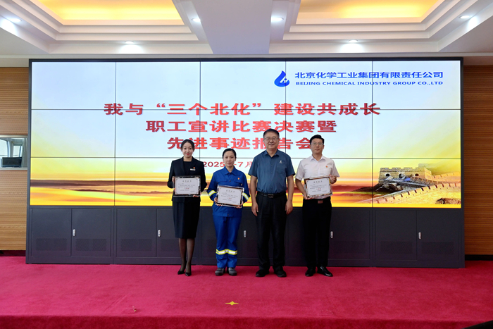 在先進事跡報告環節,市勞動模范,華騰新材總工程師崔正攜《以使命為船,以熱愛為帆,在時代洪流中奮勇爭先》;市模范集體代表,試劑所總經理助理、質量檢驗部部長孟憲冬以《傳承工匠精神,助力“三個北化”,試劑所質量檢驗部的奮進之路》為題,圍繞個人成長、科研開發、團隊建設,自信講述與北京化工共同成長的點點滴滴。