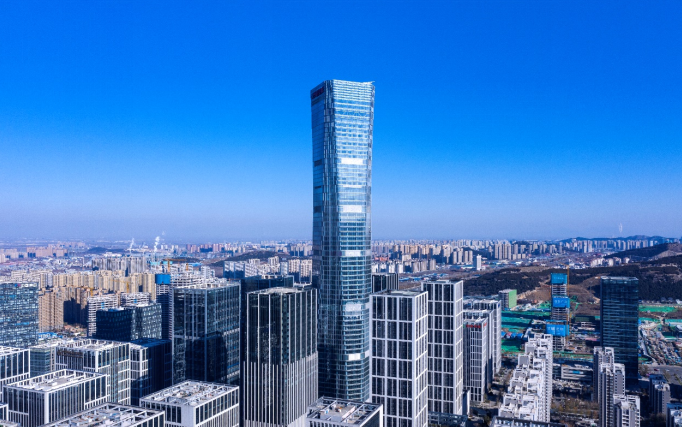京滬高鐵濟(jì)南西客站是京滬線的重要樞紐,于2010年建成,集鐵路、輕軌、公交、出租、社會車輛等市政交通設(shè)施為一體,主站房9.98萬平方米。建筑造型設(shè)計以展現(xiàn)文化性和地域性特色,體現(xiàn)功能性為指導(dǎo)思想,至今已運營10余年,正在引領(lǐng)西部新城“聚變”。而339米高的漢峪云鼎中心超高層(圖5),刷新了濟(jì)南天際線,為目前省內(nèi)最高的建筑。