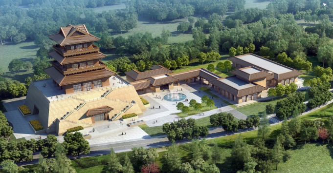 2021年是濟(jì)南落實黃河國家重大戰(zhàn)略起步之年,為加快打造黃河流域生態(tài)保護(hù)和高質(zhì)量發(fā)展樣板,充分展示濟(jì)南黃河文化,黃河生態(tài)風(fēng)貌,開展了黃河文化傳承基地項目的提升設(shè)計。其中,侯朝暉受邀參與策劃推進(jìn)項目設(shè)計,在黃河南岸打造主體建筑高約40米的新展館(圖8)。方案以穩(wěn)重內(nèi)斂的氣質(zhì),呼應(yīng)了至大至剛的黃河文化,建筑脫胎于傳統(tǒng)建筑風(fēng)格,結(jié)合山東的厚重,孔孟之鄉(xiāng)的典雅,采用現(xiàn)代金屬材料和鋼結(jié)構(gòu),對傳統(tǒng)構(gòu)件進(jìn)行抽象概括,實現(xiàn)了傳統(tǒng)與現(xiàn)代的完美融合。