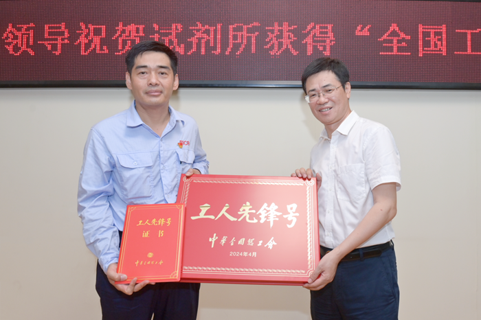 楊旭輝一行來到華騰科技園后,直奔職工一線,親手將防暑降溫物品送到職工手中,為他們“送清涼”。而后深入化工廠彩粉車間、分裝車間,試劑所甲類車間,入駐園區的液流電池實驗室項目,華騰化工甲類庫等生產經營現場。深入了解華騰科技園現狀及入駐企業情況,華騰科技園一體化方案推進實施成效,華騰科技園總體發展思路,特別是結合大興區產業規劃、集團生物醫藥孵育孵化及智造“北化模式”、危化品安全監管與高質量發展實施方案的發展思路,華騰天海公司總體工作情況等,要求園區企業從市級、大興區區級、集團公司3個層面,從生物醫藥、?;钒踩?、化工新材料3個產業方向落實園區定位,進一步落實園區功能整合、企業梳理及組織整合,另對全面履行安全生產主體責任,提升園區服務能力水平等工作進行具體部署。楊旭輝還向榮獲“全國工人先鋒號”的試劑所質量檢驗部頒牌,并向他們表示熱烈祝賀。