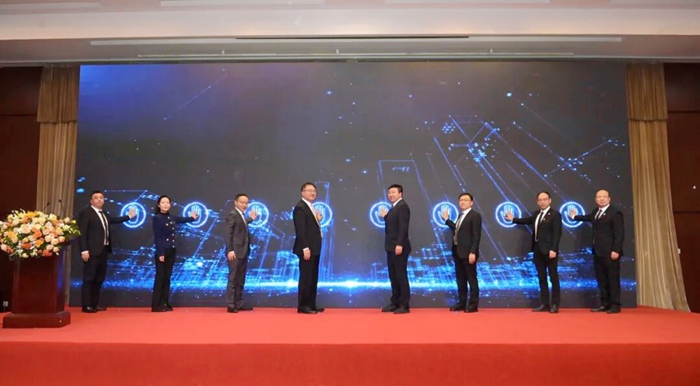與會相關領導、專家共同為“雪蓮”微創手術手套揭幕。