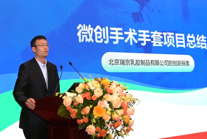 北京瑞京公司研發工程師仇維高介紹了“雪蓮”微創手術手套創新研發過程。