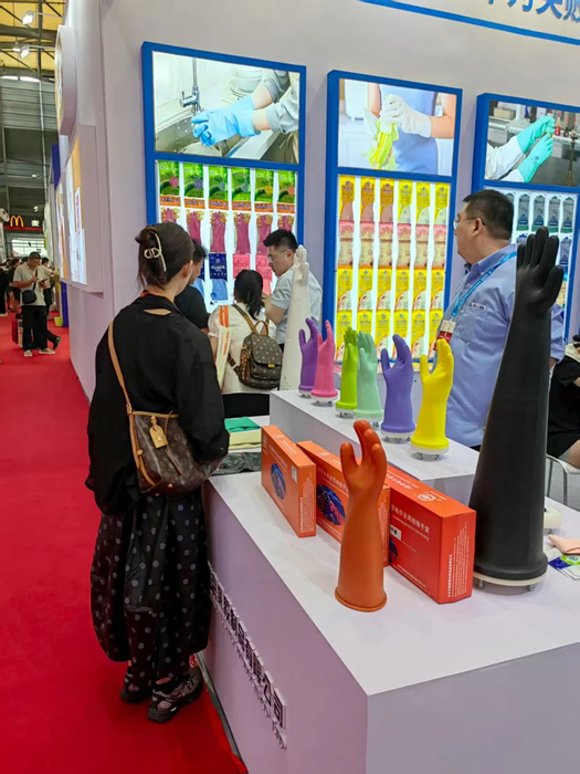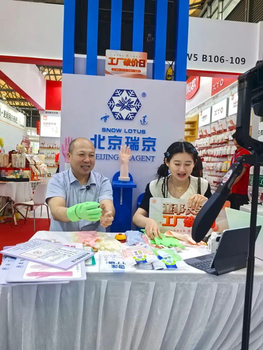 通過現場試用體驗、功能演示等互動環節,瑞京公司人員向觀眾直觀呈現出產品的舒適性和防護性能,吸引了眾多客商駐足咨詢。公司產品獲得現場觀眾的一致好評,同時進一步鞏固了瑞京公司在乳膠手套領域的品牌影響力。